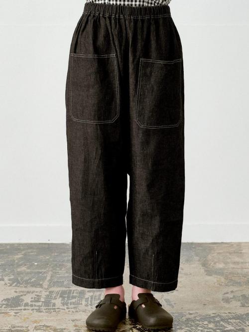 綿麻デニムで仕立てたワイドシルエットのパンツです。